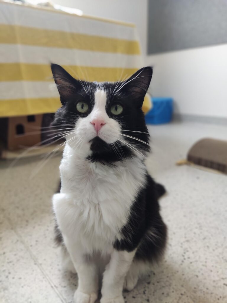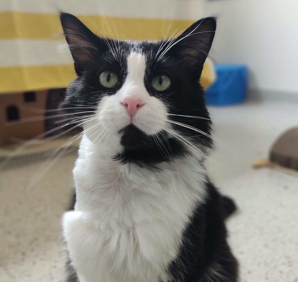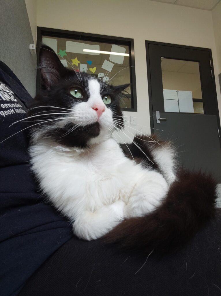 With time, patience, and understanding, Dawson has the potential to relax and trust. He’s best suited to someone experienced with fearful or undersocialized cats, someone who can read feline body language and give him space to grow at his own pace.