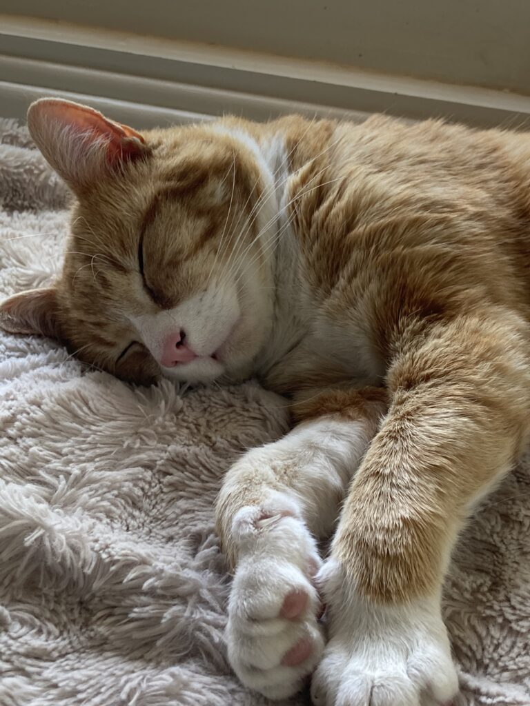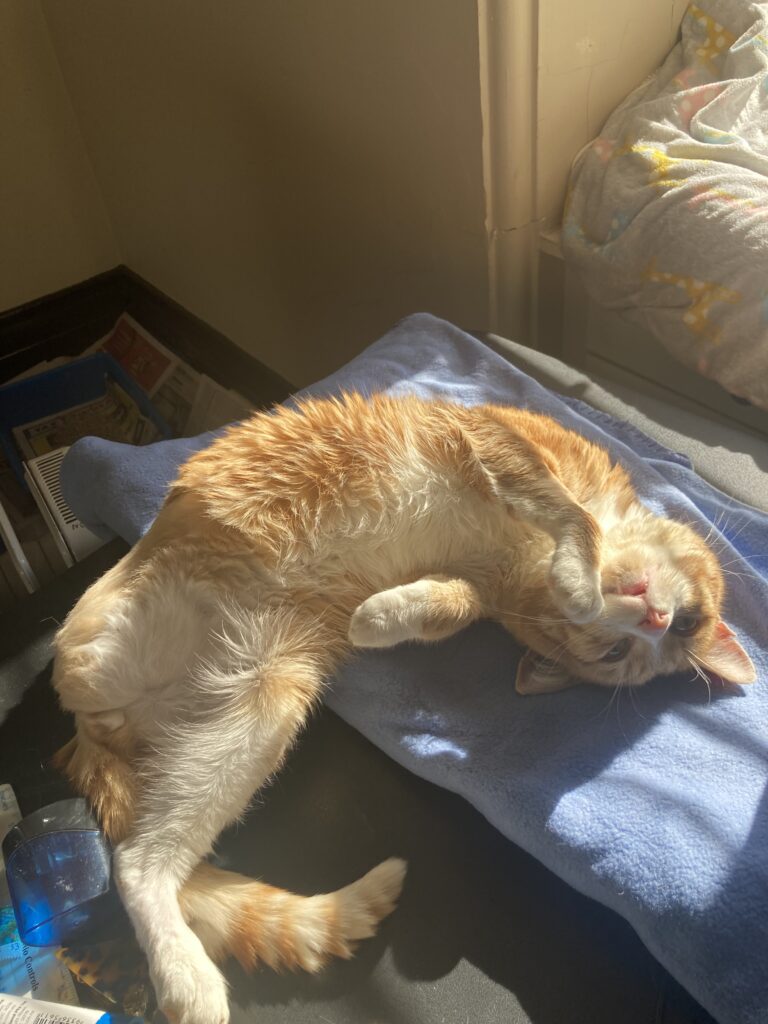Dr. Seuss is also FIV+ (Feline Immunodeficiency Virus positive), but don’t worry he can still live a long, happy, and healthy life just like any other cat!