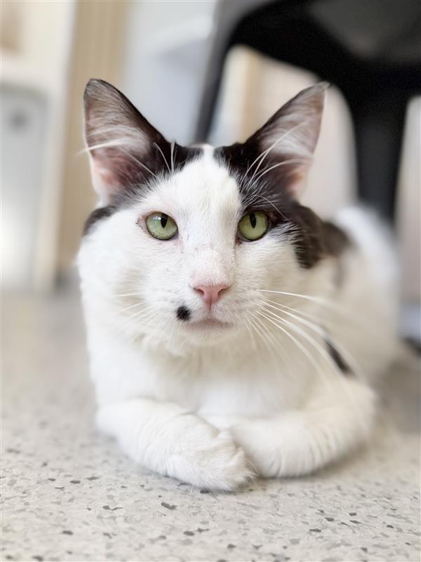 Fev absolutely adores pats and gentle attention. Once he trusts you, he’s very affectionate and enjoys spending time close to his humans, soaking up love at his own pace. He also has a curious side and likes to quietly explore his environment, always interested in what’s going on around him. Loves to curl up in your lap for cuddles.