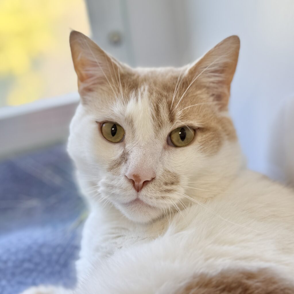 Jaffa previously lived with another cat who bullied him, so he can be a little shy with cats at first. Because of this, he would likely thrive as the only cat in a peaceful home where he doesn’t have to compete for affection or space. However, he may also do well with another calm, respectful cat who gives him time to adjust.