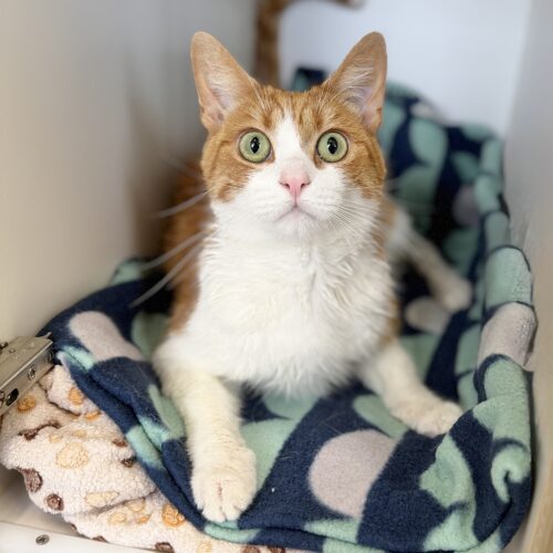 Julia loves to chat and will greet you with sweet social meows, especially when she’s feeling comfortable. She truly enjoys a gentle pat and will happily soak up quiet affection at her own pace. One sure way to win her heart is through food, Julia has a soft spot for tasty wet food treats!