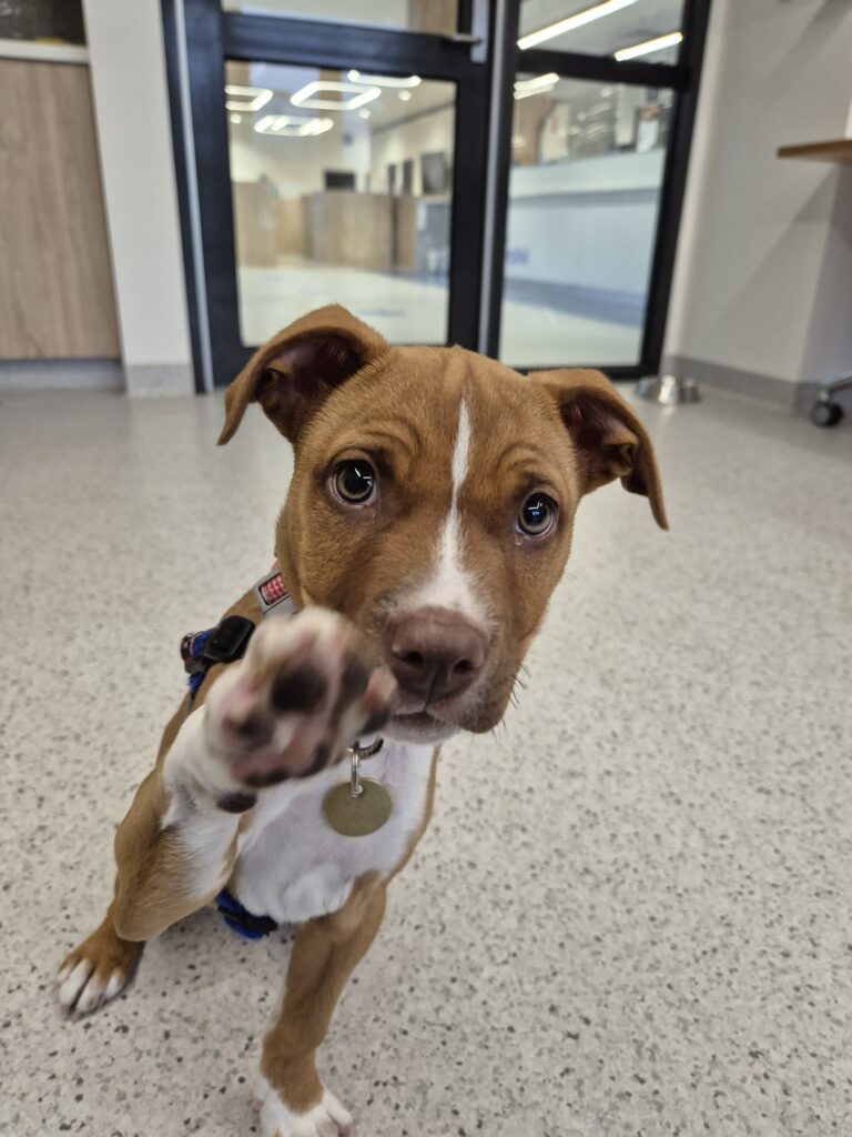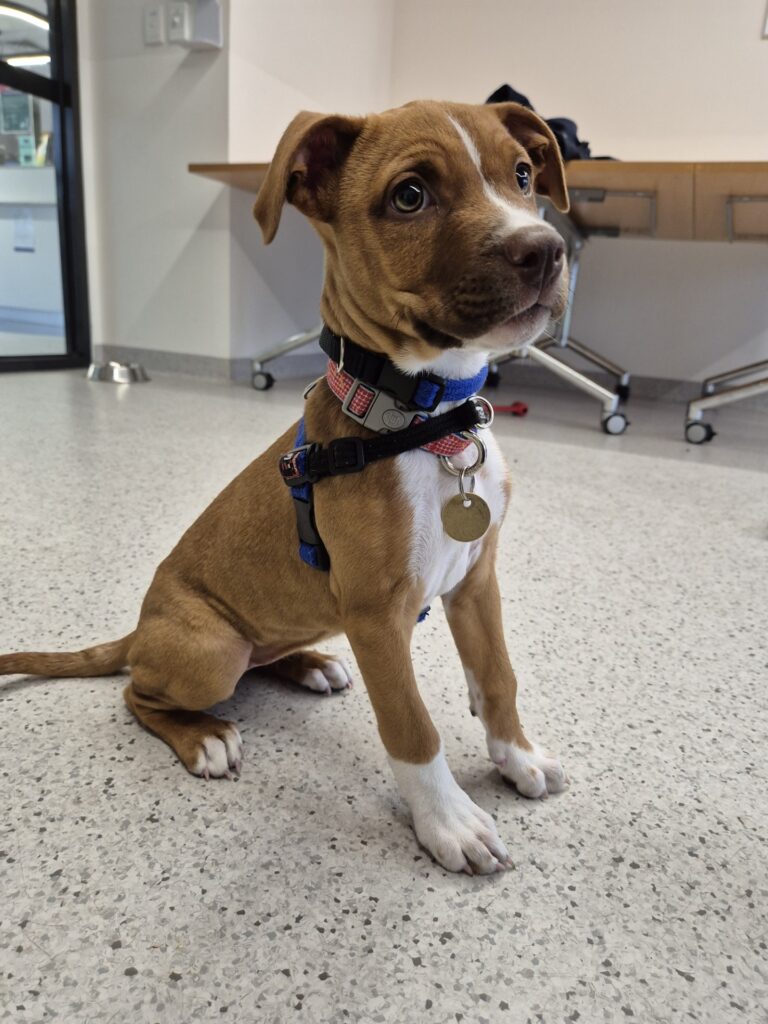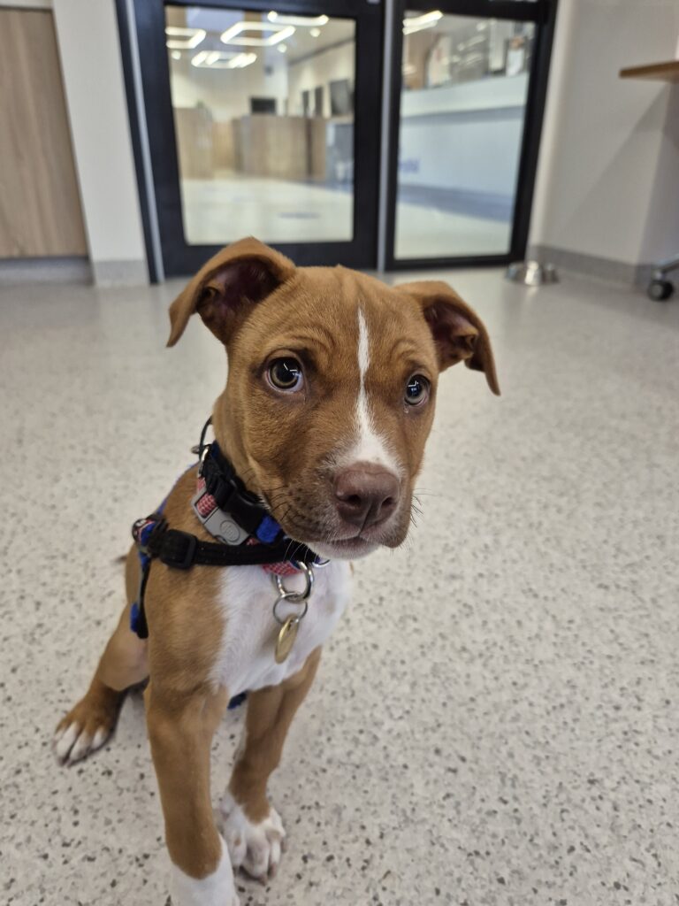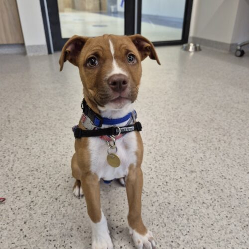 Juliet is a delightful young American Staffy cross puppy, full of personality and puppy sparkle! Bursting with energy, curiosity, and a touch of cheeky mischief, she’s searching for an active home ready to support her as she grows into a confident, well-rounded dog.
