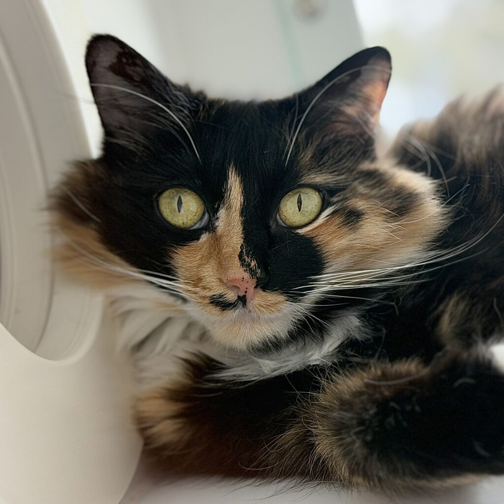 Tori is a gorgeous fluffy tortoiseshell with a gentle presence and a soft, expressive face. Like many torties, she has her own unique personality. Thoughtful, curious, and quietly charming. Her fluffy coat and warm coloring make her as beautiful as she is endearing.