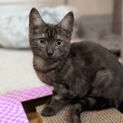 If you’re looking for a quiet kind-hearted kitty who will blossom into a loyal, cuddly friend, Vovo is ready to meet you. Give her a little time, and she’ll give you a lifetime of love.