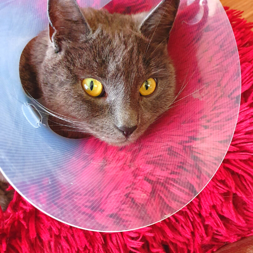 This has proven problematic when Janet works from home – she steps on the laptop keyboard making it impossible for her to work – or insists on jumping on Janet’s shoulder getting tangled up in her headphones when on a video call!