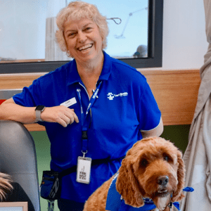 “The Volunteer Centre at Peter Mac is amazing and the Lort Smith Pet Therapy Program has great support from hospital management. We visit a wide range of patients in areas from waiting rooms, wards, chemotherapy, radiotherapy, pre- and post-surgery, and staff in offices and research areas.
